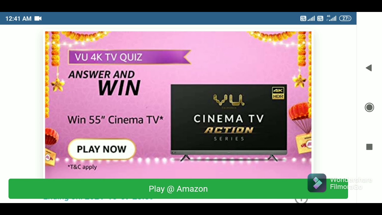 Answer And Win Vu 4k Tv Quiz Amazon Some Time I Was Rong Just Focus Green Lines - Youtube